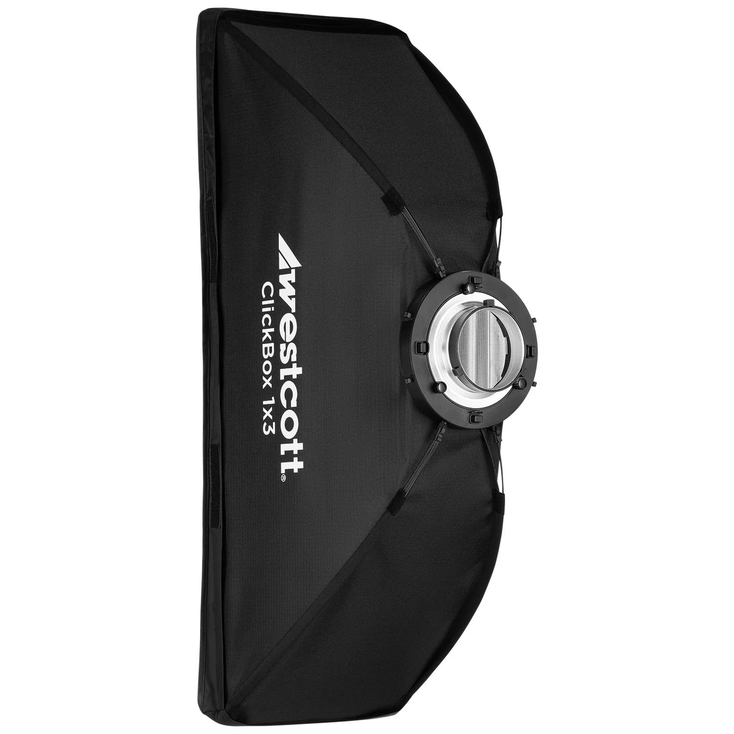 - Slim 1x3 strip softbox with Bowens S-mount for off-camera flashes and LEDs